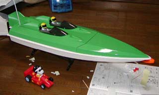 先日、前々から欲しかったボートのラジコンをヤフーのオークションでゲット。 早速、組み立て初走行。 なかなかおもしろいです。最初はちゃんと浮くのかとか心配でしたが、走らせたらグイグイ行くんですね。波を使ってジャンプしたり、クイックなターンさせたり。 電動ですからバッテリーの残量を気にしながらやらなければなりませんが。 でも、平日の昼間から一人ラジコンをしてる姿は… |