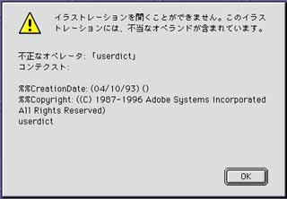 このメッセージ見た事ある人います? お仕事でIllustratorを使っている人なら何度か見た事あるんではないでしょうか。 僕は今日、久しぶりに見ました。以前見たのは会社にいたころだし、たしか5.5を使っていたころだからかれこれ4年以上ぶりか…『久しぶりだね』 な〜んて言ってる場合ではな〜い。 佐○急便が任意保険に入ってないのと同じ理由でバックアップをあまりとらない(分かるかなあ?)僕ですから、こんなメッセージが出たら、かなりピンチです。 ムシムシと暑い中、一気に寒くなりました。 こんな時はテキストエディターで開いて…文字びっしりです。 この文字の羅列の中から開かない理由をつきとめて書き換えれば… な〜んてことはできる訳もないので、とりあえず白紙のaiファイルを同様に開きとりあえず頭の50行ほどをコピー、ペースト。 すると、壊れていたデータがちゃんと開きました。頭の中ではロッキーのテーマが鳴り響き、思わずガッツポーズ。あきらめずにやってみるもんですね。 たしか4年前はうまくいかなかったんだよなぁ。 しかし、なんで壊れるのでしょう? |